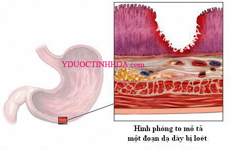 - Kéo dài từ 15 phút - 1 giờ, có thể khu trú ở bên trái nếu là viêm loét dạ dày hoặc bên phải nếu là viêm loét tá tràng thuốc trị vết thương. Cơn đau có thể lan ra vùng hông sườn phải, hoặc có thể chói ra sau lưng (nếu loét ở thành sau dạ dày).